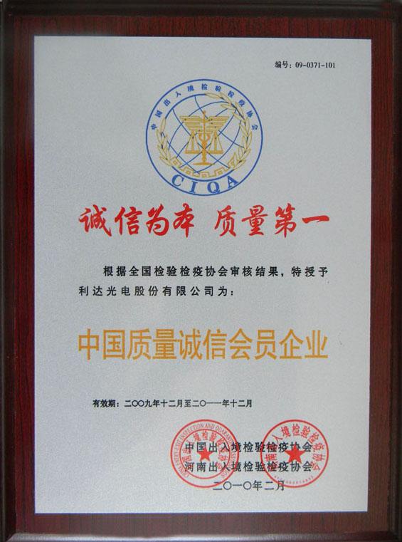 利達光電股份有限公司榮獲首批“中國質(zhì)量誠信會(huì )員企業(yè)”榮譽(yù)稱(chēng)號