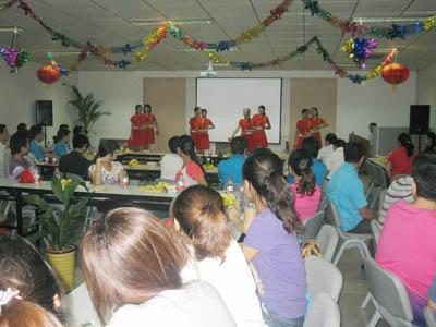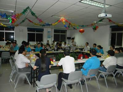 ??????? 聯(lián)誼會(huì )在熱烈、祥和的氣氛中開(kāi)始。群體快板《利達發(fā)展新面貌》;合唱《套馬桿》;獨唱《笨小孩》、《火苗》;魔術(shù)表演;舞蹈《天竺少女》;游戲《擊鼓傳花》節目不時(shí)博得大家的陣陣掌聲,整個(gè)會(huì )場(chǎng)宛如一派歡樂(lè )的海洋。