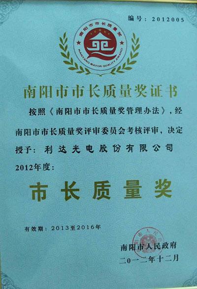 利達光電榮獲2012年度南陽(yáng)市“市長(cháng)質(zhì)量獎”