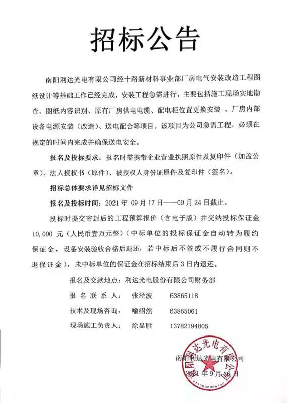 - (2022-09-29)光電新區三期廠(chǎng)房一層裝修施工的招標公告